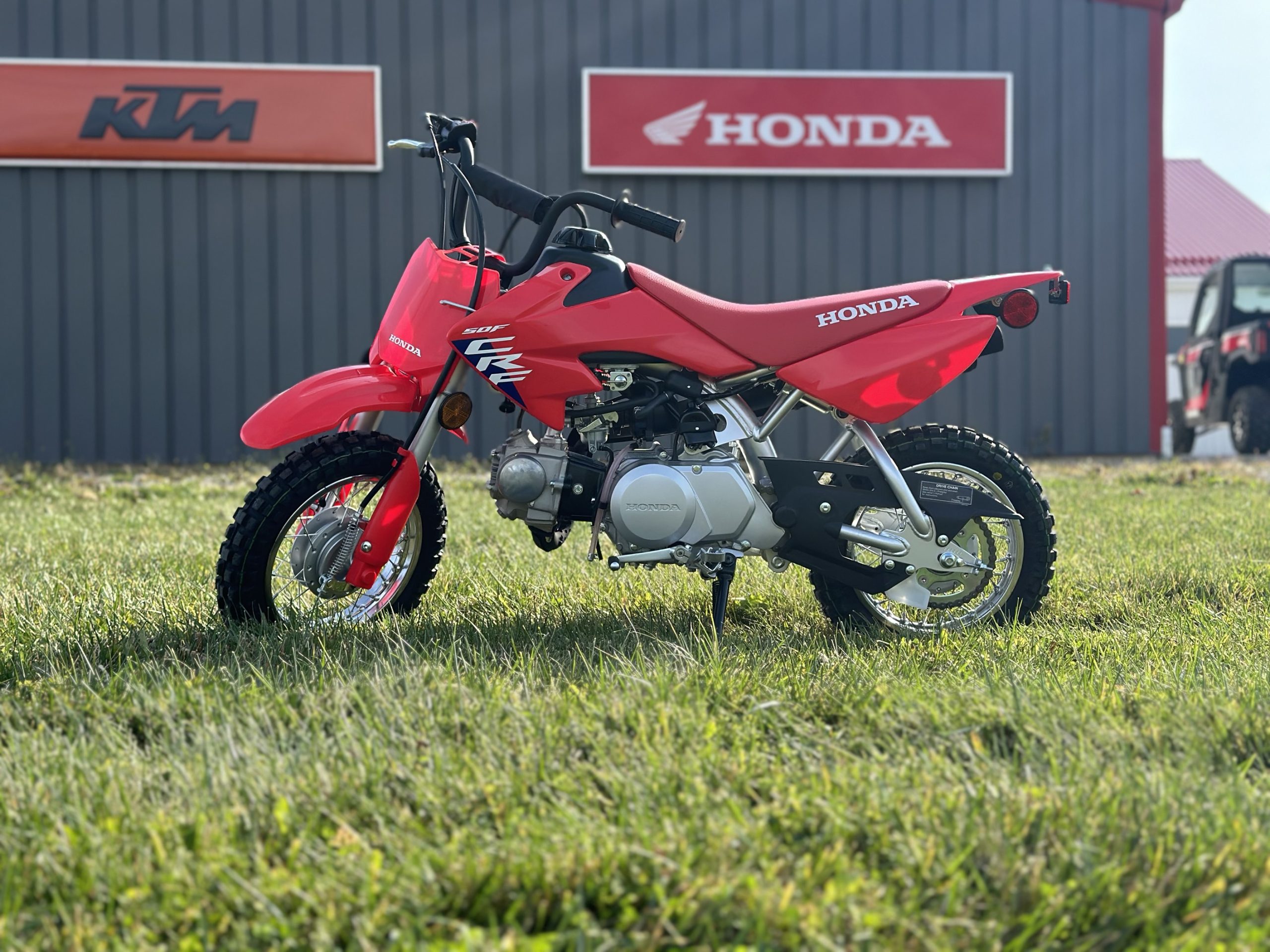THE START OF ADVENTURE. Some are lucky enough to discover it from an early age. Easy to start, easy to use, and always fun. Widely recognized as the quintessential mini bike, the CRF50F is the choice of first-time riders the world over. Its inverted fork, 49cc engine, easy-shifting gearbox with automatic clutch and low seat height make the CRF50F a cinch to ride. Built strong and solid, with big bike styling and racy graphics, this CRF will soon have the fun meters of the smallest riders in the family running red – Honda red.